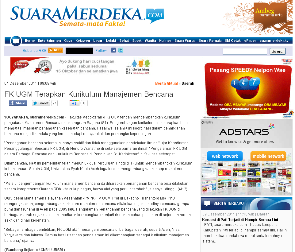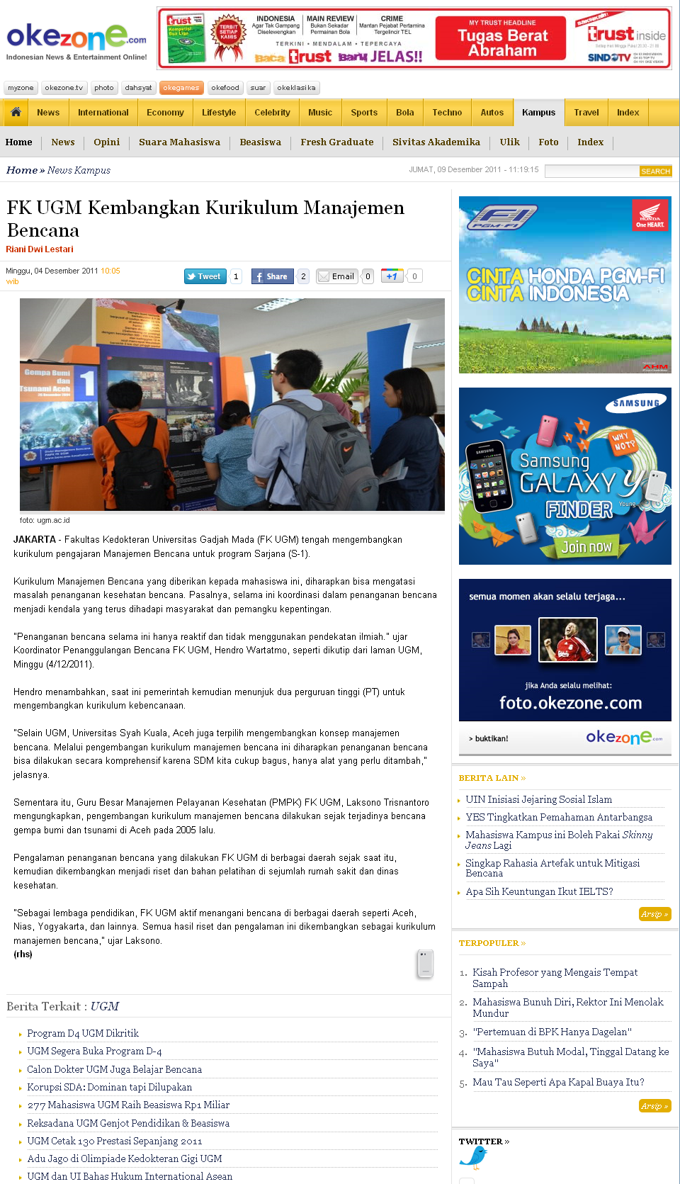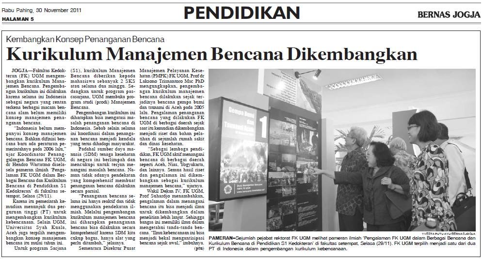 kampus.okezone.com - Fakultas Kedokteran Universitas Gadjah Mada (FK UGM) tengah mengembangkan kurikulum pengajaran Manajemen Bencana…